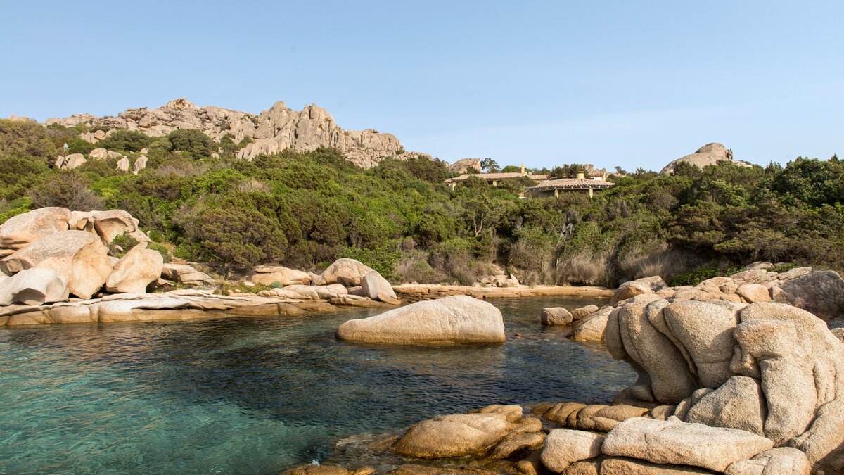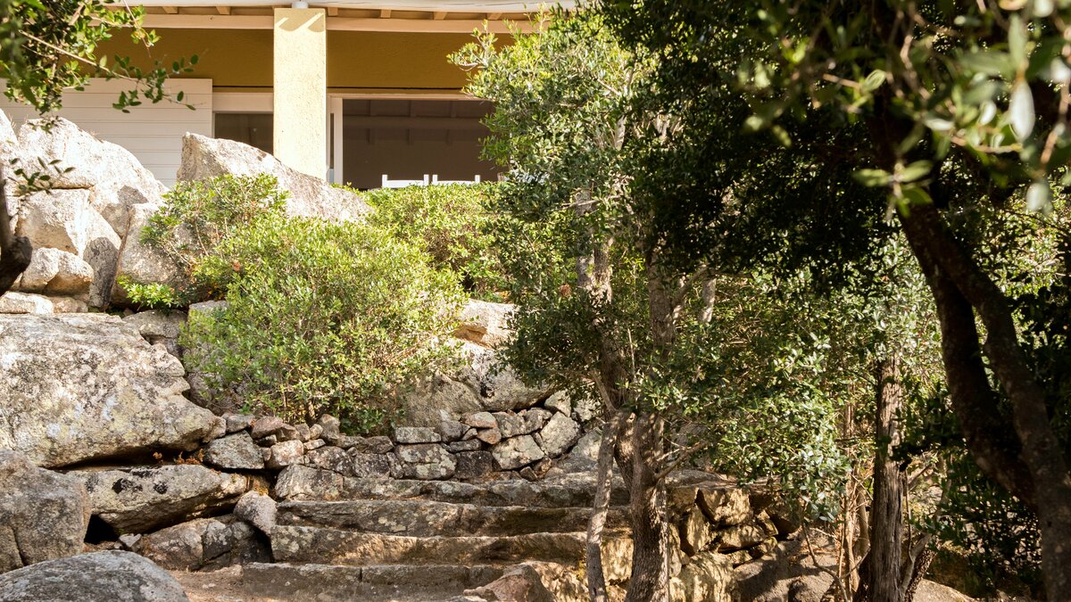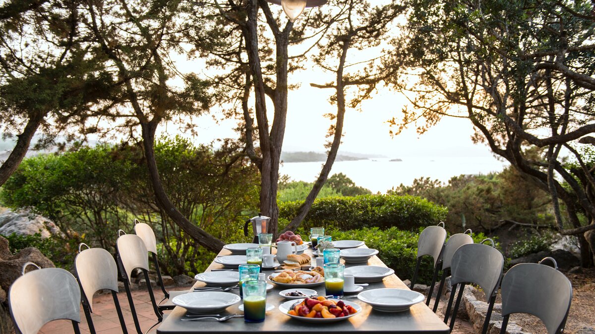 Nestled in a sylvan setting with stunning views of the sea and islands, this family villa on Sardinia overlooks a white sand beach, with the dramatic rocks of Capo d’Orso as a backdrop.