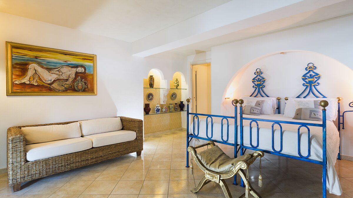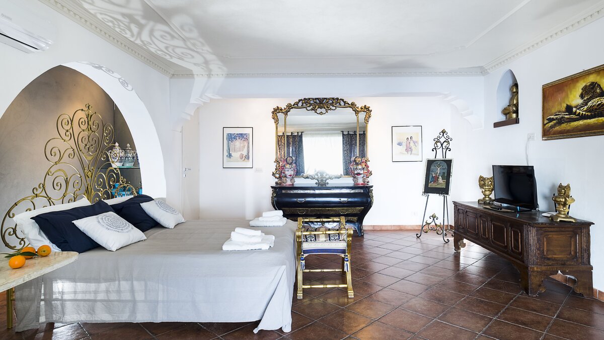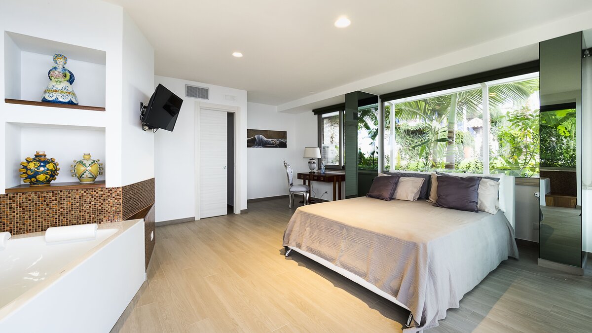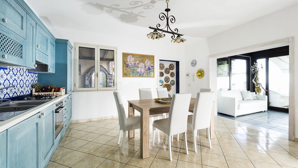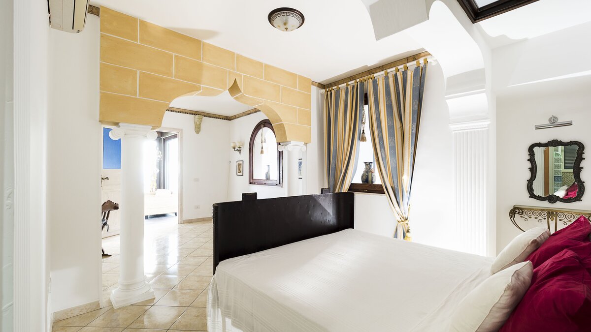 The private infinity pool at Taormina Mare overlooks the stunning east coast of Sicily, and the adjacent lounge area underneath a stone pergola provides the perfect spot to gaze out over the Mediterranean Sea. Set over two floors and an annexe, this wonderful property is furnished in a blend of classic and contemporary styles, with tiled and wooden floors, numerous outdoor areas, large terraces, and floor-to-ceiling glass doors throughout. One of the many great features of Taormina Mare is the covered outdoor Jacuzzi for guests to relax and unwind. The sophisticated yet traditional interiors provide a sense of comfort and luxury.