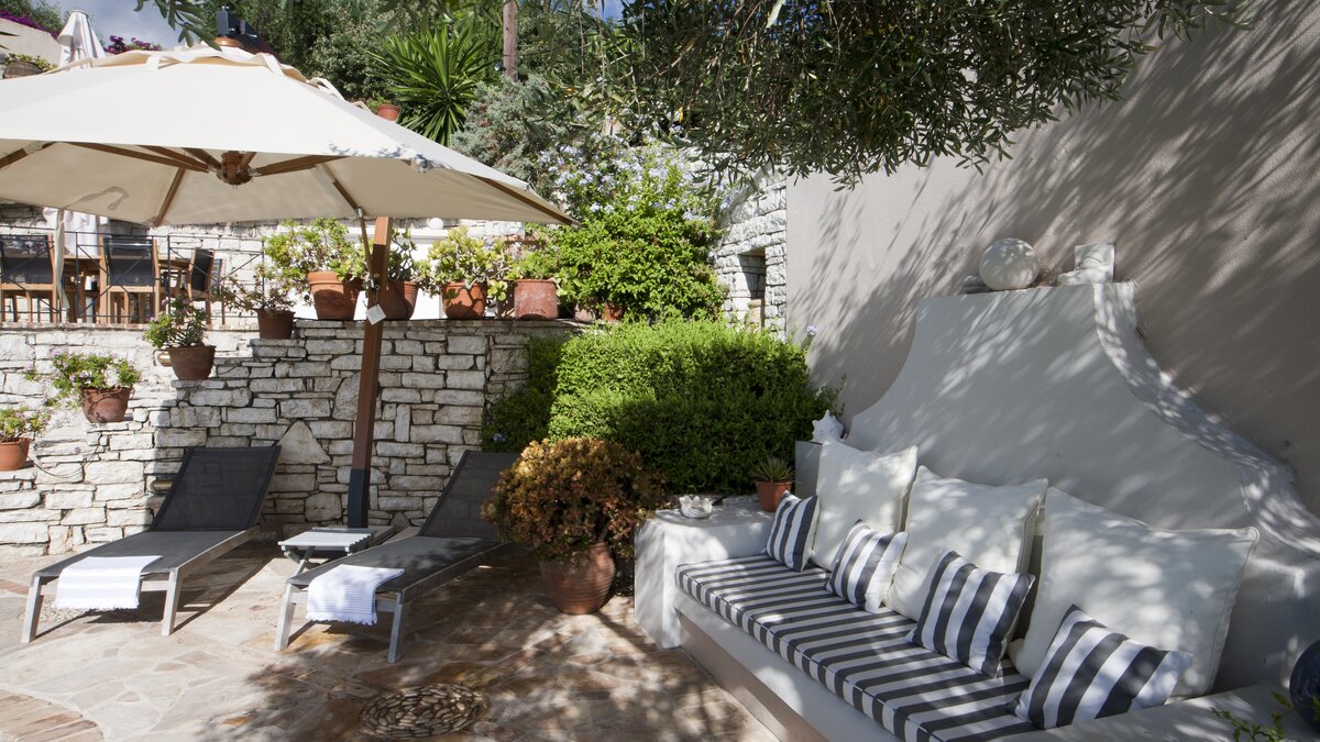 The beautiful, mature garden has olive trees providing shade whilst masses of shrubs and flowering plants tumble down the dry stone walls. Terracotta pots overflow with scented colourful plants. Steps lead to two waterside sunbathing areas with further steps into the sea and a boat mooring. The Boat House is welcoming, comfortable and deliberately understated, with an eclectic mix of pictures and artefacts throughout. The helpful staff will unobtrusively ensure that guests have a truly relaxed and indulgent stay and teenagers will love its walking distance to Kassiopi. The Boat House is a unique waterside bolt hole in a location providing a rare escape from a frenetic world.