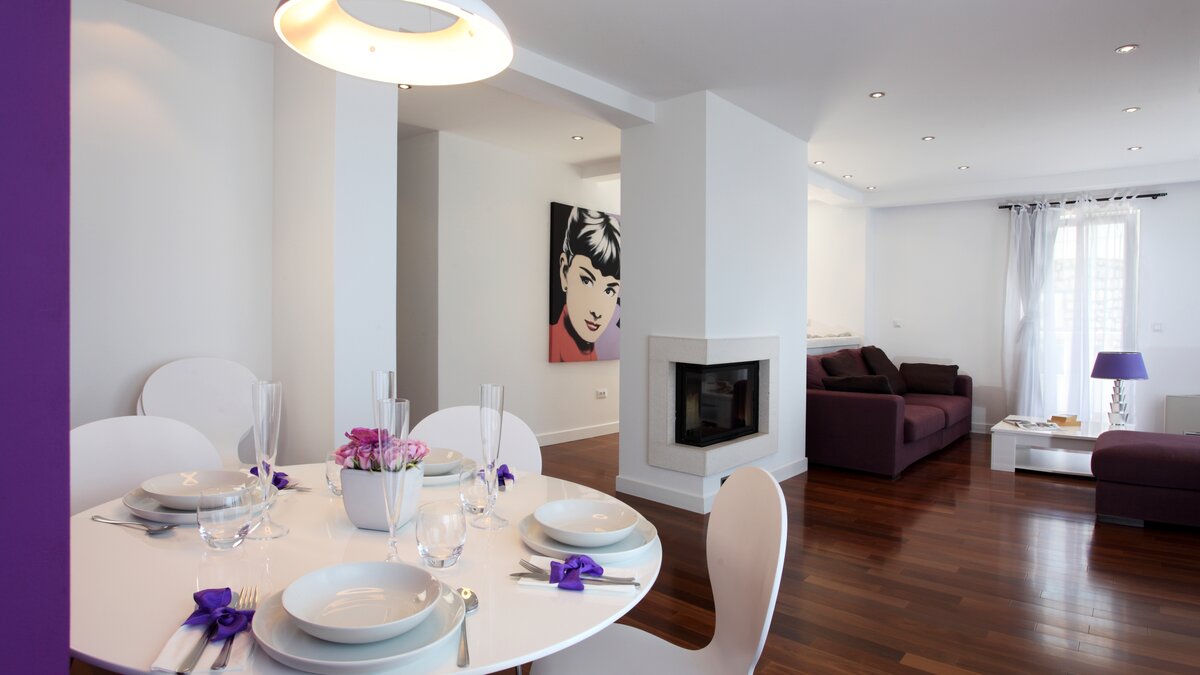 An open-air staircase leads from here to the two upper floors, both with two en suite bedrooms, and each with its own stylish kitchen, dining area, sitting room and balcony. A rooftop sunbathing terrace crowns the villa, which enjoys a scenic rural spot, 3km from Podgora and just a two minute walk from local shops and restaurants in Drasnice. For exploration further afield, the lovely port town of Makarska is a 12km drive away, with a characterful old town area, seaside promenade, beaches, nightlife, and ferries to the island of Brac.