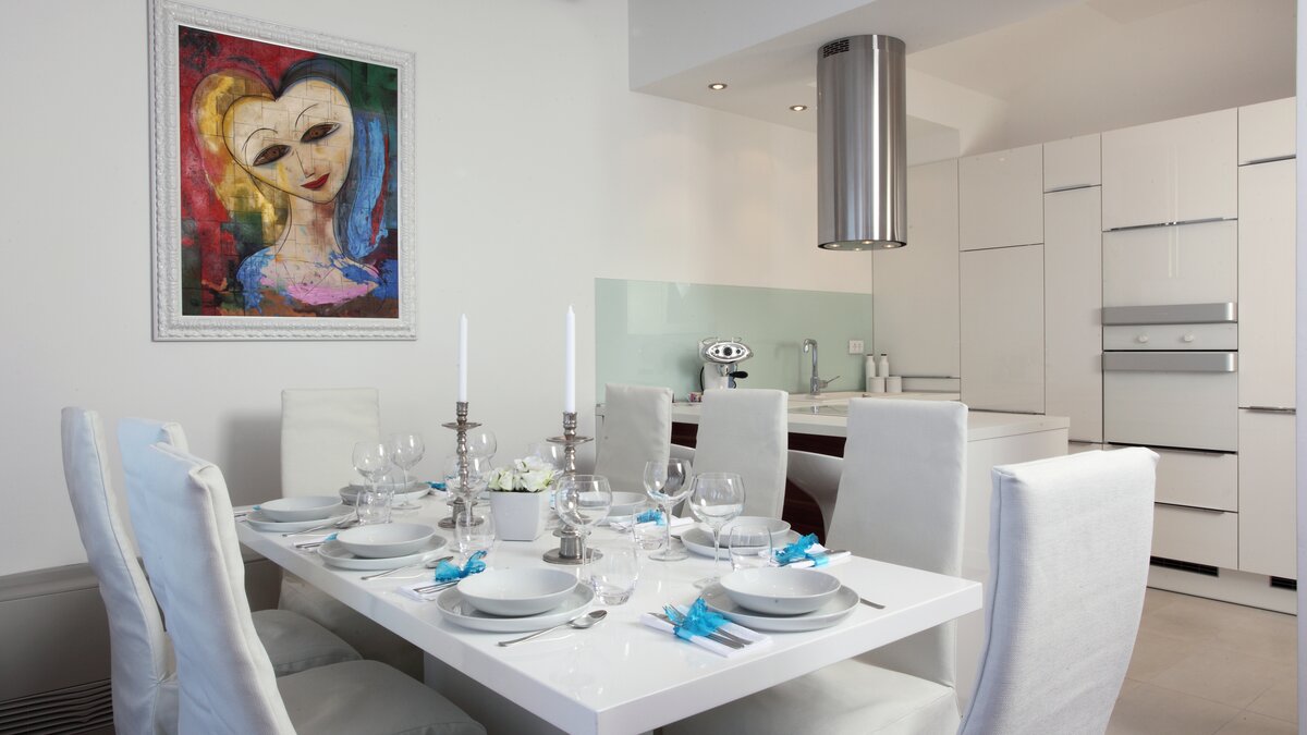A fresh, bright and contemporary villa, the aptly named White Beach House is just a few steps from the beach below; and styled throughout in crisp white, with splashes of colour in fabrics and quirky artworks. A thoroughly modern villa, with WiFi, underfloor heating and air conditioning throughout, it offers exceptional social space in an ideal arrangement for two families or a group of friends. At ground level, a living room opens out to a seafront sundeck and the little heatable pool, and there is a sheltered al fresco dining area, served by a built-in barbecue.