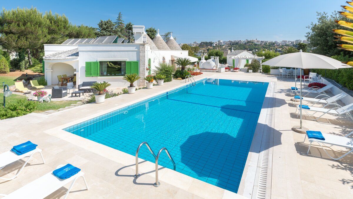 Genom att göra det mesta av Medelhavsklimatet är detta vackra lilla Trulli-hus omsorgsfullt utformat och mycket välutrustat för inomhus- och utomhusliv. En generöst stor swimmingpool är brännpunkten av grunderna, dess poolterrass prickad med färgglada blomsterbäddar och unga palmer, och backas upp av klustrade fruktträd i villans privata fruktträdgård. En takterrass med matplats, välutrustat utomhuskök med grill och vedeldad pizzaugn gör luncher utomhus till en glädje, och det finns bordtennis och ett tvättstuga / duschrum i trädgården också. Det finns många olika sittplatser i sol och skugga i trädgårdarna. Själva husets utformning är idealisk för två familjer. I den karaktäristiska trulli-sektionen finns två sovrum, ett vardagsrum och ett pentry som vetter mot en uteplats; och anslutande dörrar förbinder den historiska byggnaden med den nyare delen, med ytterligare ett dubbel- och tvåbäddsrum och ett ljust och välutrustat kök/vardagsrum med öppen planlösning. Villan har mycket god integritet i sina inhägnade trädgårdar, och ligger faktiskt bara 1,5 km från affärer och restauranger i centrum av Cisternino, nås till fots längs landsvägarna. En utmärkt restaurang Osteria Sant'Anna och en mindre järnvägsstation med förbindelser till Lecce ligger närmare. En 10 km bilresa leder till ett urval av sandstränder och strandklubbar, och Martina Franca, Ostuni och Alberobello ligger alla inom 20 km.