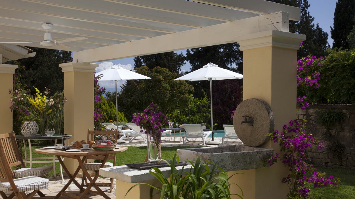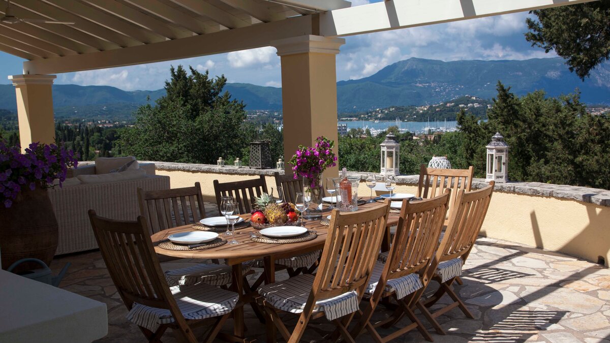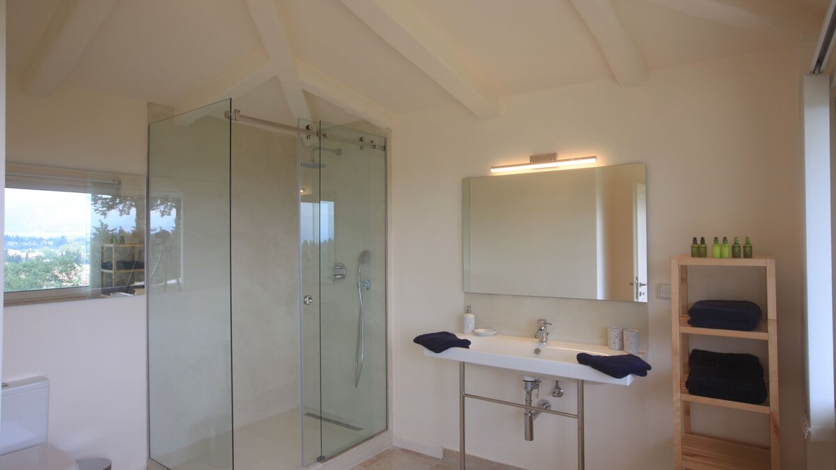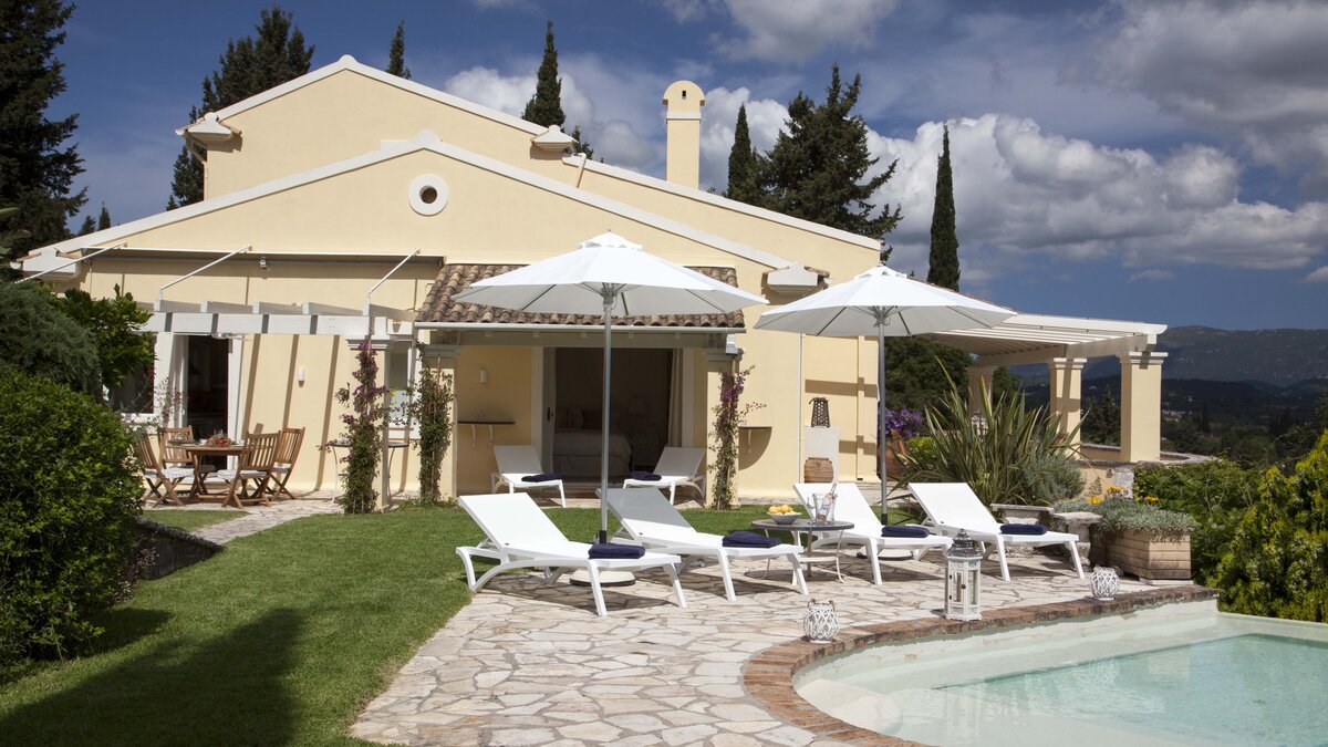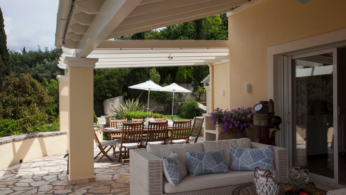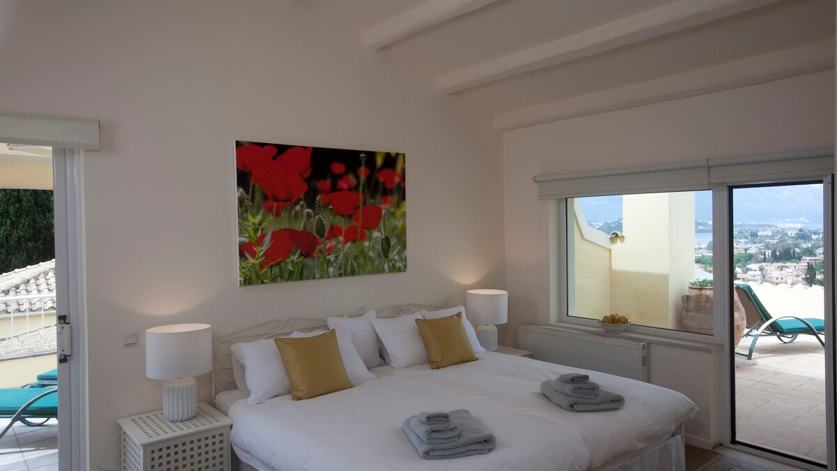 Set on the hillside, encircled by olive groves and cypress trees, Verdi opens up to an al fresco lounging and dining terrace, beautiful gardens and stunning infinity pool from which the magnificent surroundings can be observed. With crisp white décor throughout, limestone tiled floors, and modern facilities, this villa combines the charm and design of a traditional Corfiot house with the luxury of a contemporary property. The open-plan living and dining area, adjacent to a well-equipped kitchen, has direct access to the outdoor terrace, gardens, and swimming pool. A master bedroom with super king size bed and two twin bedrooms, all opening to the outside and with en suite bath or shower rooms, complete the ground floor. A beautiful twin bedroom occupies the upper level with a private balcony to enjoy the fabulous views. Verdi is a short drive away from a supermarket, several restaurants, the yacht marina, and local nightlife with plenty of bars and clubs. The lovely Corfu Town is 7km away and Barbati Beach is 10km from the villa.