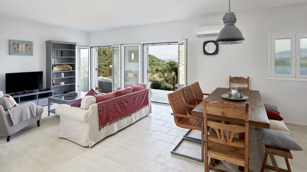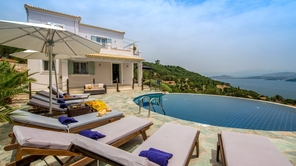 Set in an elevated location perfectly positioned to take advantage of stunning views where rolling green hills meet the sparkling sapphire of the Ionian Sea, Villa Anthos is the perfect Greek island retreat for both families and groups of friends. Pretty Kerasia Beach is just 1.4km from the property, while the shops, bars and restaurants of charming St. Stephano are just a short drive away. The property itself has a comfortable ground floor open plan living area comprising a modern kitchen and a sitting/dining room with doors opening to the terrace where the living area extends to an outdoor dining and lounge area.The terrace overlooks the private infinity pool. Also on the ground floor are two twin bedrooms, one with en suite shower room and one with the exclusive use of an adjacent shower room. Upstairs there are two double bedrooms with well-appointed shower rooms en suite and glass doors leading out to a furnished wraparound balcony. Fabulous views can be enjoyed throughout - Villa Anthos is a real haven of peace and tranquillity with all you could need a short drive away.