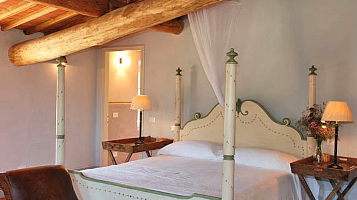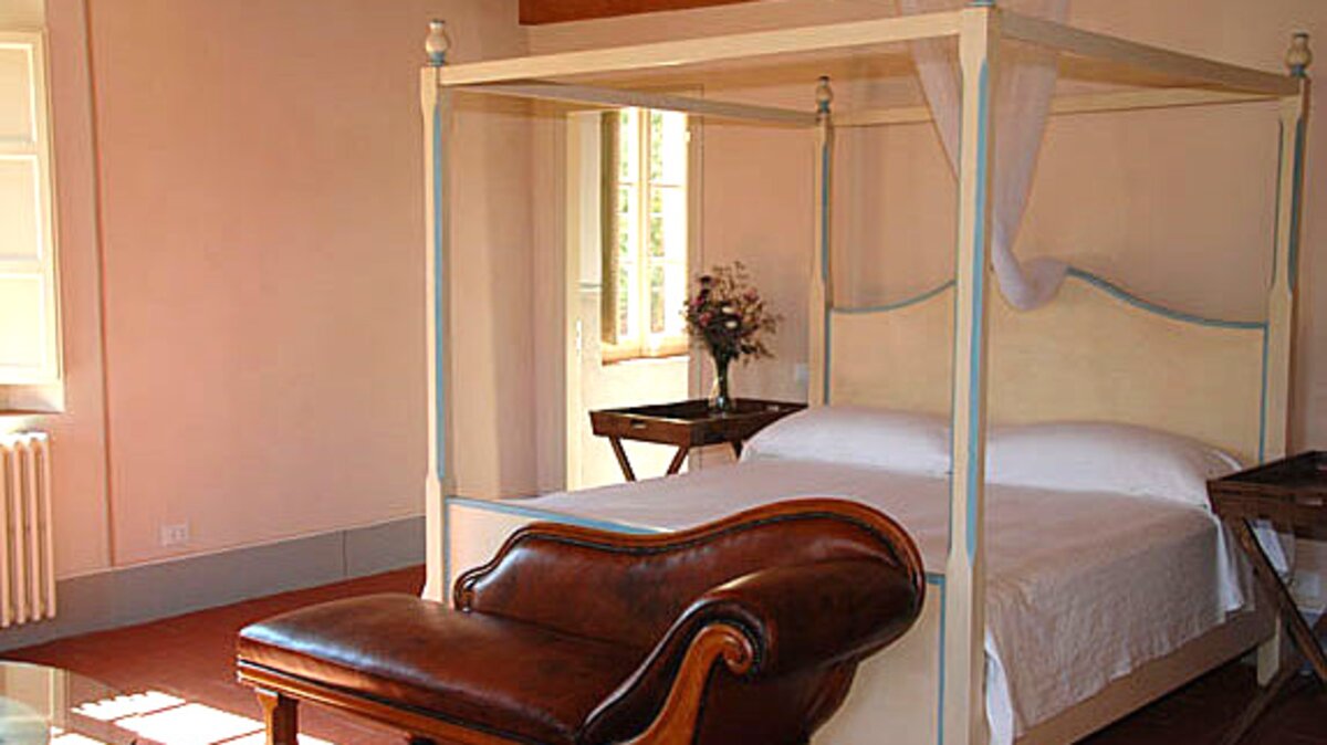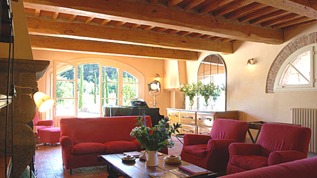 Graceful cypress trees line the path to this lovely house, a precursor to the elegance within. In its spacious sitting room, comfy sofas nestle round a big stone fireplace and a grand piano, and double doors open on to the garden. An attractively country-style dining room is open-plan, through a broad arch, to the very well equipped kitchen, where tradition meets high-tech with an Aga and modern appliances. In a layout which lends itself to use by two families, the villa’s two upper levels each have a twin and a double bedroom and a master suite, the first floor master complete with four-poster bed and dressing room, and the second with its own study.All six bedrooms are air-conditioned, stylishly understated and furnished with a charming mix of rustic and contemporary pieces. Outside, a pergola pathway leads from the house to the twenty metre swimming pool, balanced, at the opposite end, by a leafy lounging pergola. In between are long lawns with a sail-shaded area, and the pool terrace is safely encircled by a fence disguised in greenery. Within easy reach of Pisa and the coast, Floreale is just 2km from local shops.