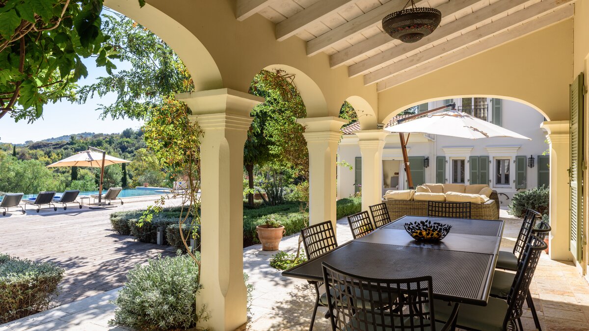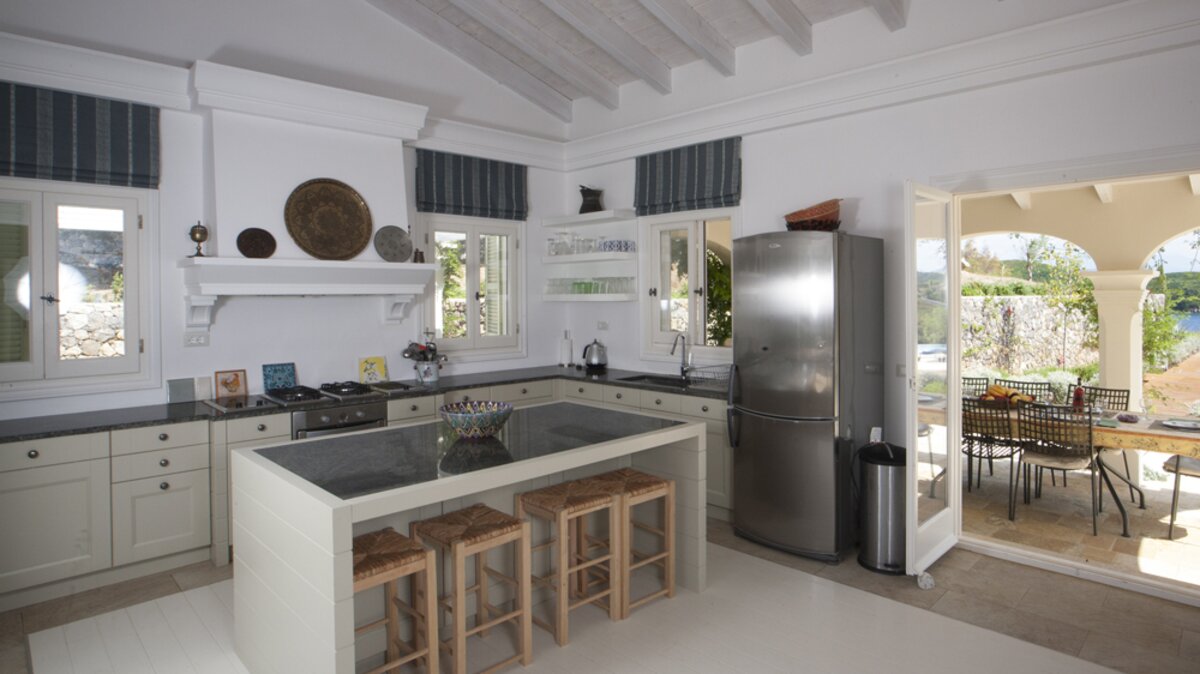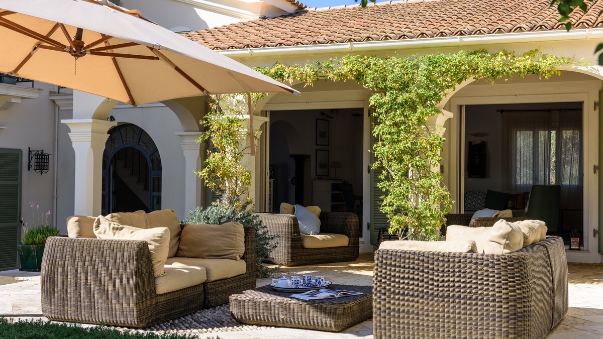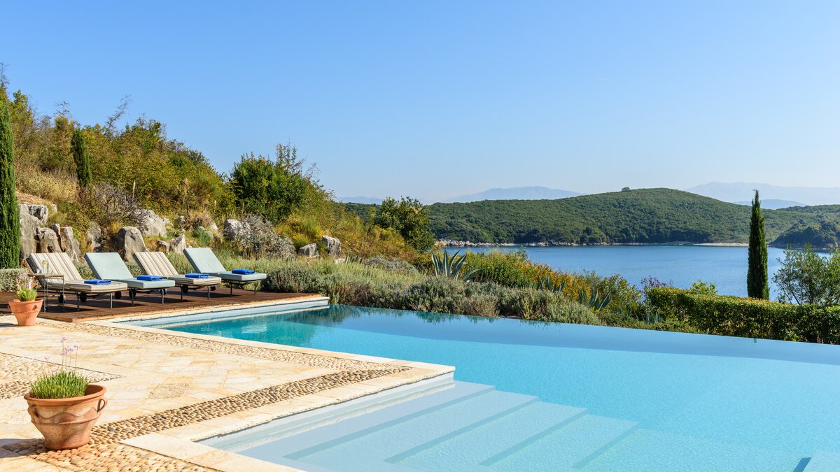 With neo-classical architecture and contemporary comforts, this lovely villa is peacefully positioned between Avlaki and Coyevinas, with a choice of beaches a five minute stroll away. Standing in stylishly landscaped gardens, the house looks out to sea across a hugely spacious terrace, where broad timber sundecks and a pretty pergola complement a gorgeous heatable infinity pool. Inside, the villa blends informal elegance with eclectic furnishings and objets d’art, creating the welcoming feel of a much loved home.On the ground floor, a comfortable sitting room and spacious kitchen open out to covered verandas for al fresco lounging and dining, and three en suite bedrooms each have French doors on to the open terrace. The master suite has the first floor all to itself, complete with a private balcony, and tucked away at lower ground level is an air-conditioned sitting/TV room. Cook service can be pre-booked here for an extra leisurely break, and excellent eateries are a very short drive away in Kassiopi and St. Stephano.