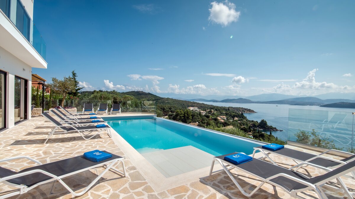 Villa Kyvos har utformats eftertänksamt med utsikt i åtanke och fantastisk utsikt över havet till Albanien kan avnjutas från nästan var som helst i huset. En kort promenad från både exklusiva St Stephano med sitt utbud av utmärkta tavernor samt Kerasias vackra stenstrand, är denna moderna lyxvilla perfekt för en avslappnande semester och välutrustad för underhållande. På bottenvåningen finns det moderna köket och vardagsrummet / matplatsen, inrett i en eklektisk modern stil, öppna ut mot den bländande infinitypoolen och omslutande terrass som leder till ett matbord med grillplats. Också på denna våning finns det stora sovrummet, som vetter mot terrassen och med badrum en suite. Det finns fyra sovrum på första våningen, en dubbel och tre tvillingar, alla med dusch en suite som öppnar in i rummet och separata toaletter en suite. Varje sovrum på denna våning har utsikt över havet och alla har tillgång till en liten balkong. Den spektakulära takterrassen är en riktig höjdpunkt, med panoramautsikt längs kusten, ett välutrustat sommarkök och en härlig skuggig matplats för att njuta av middag vid solnedgången.