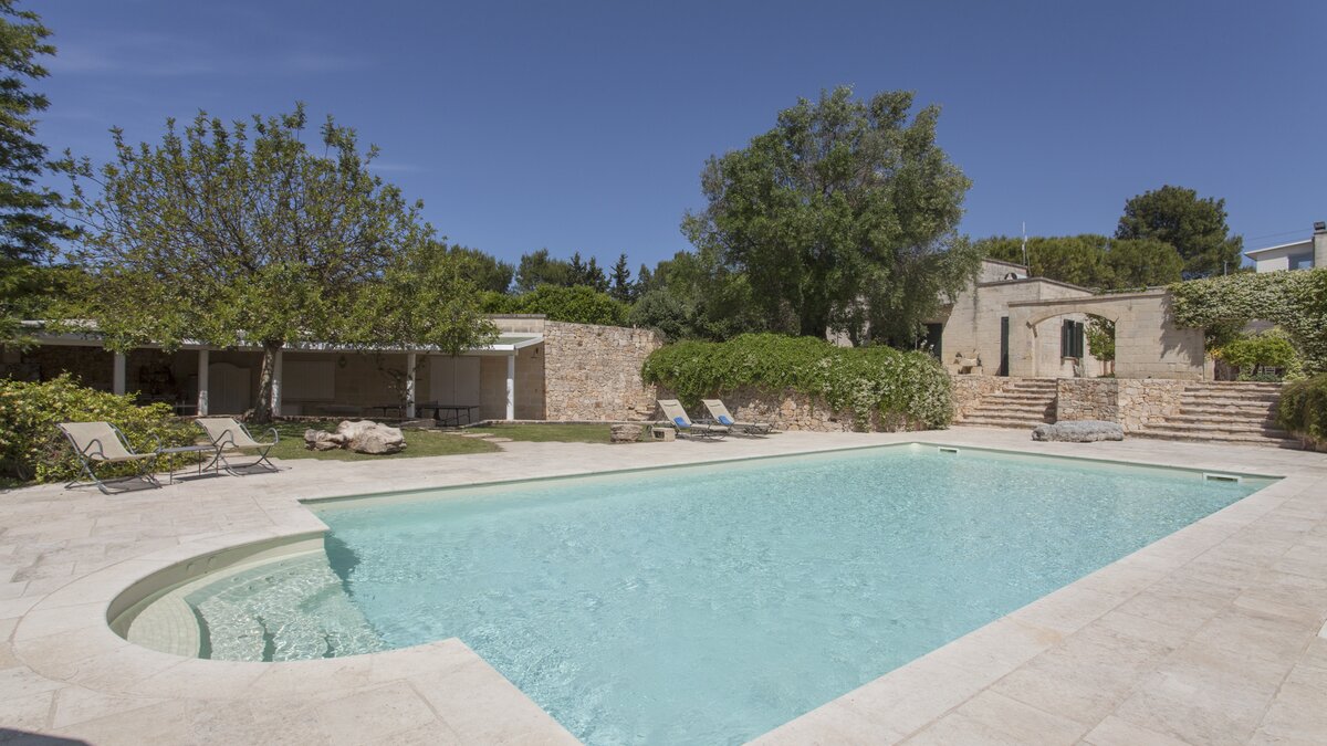 Lecce är en vacker barockstad i hjärtat av Italiens “stövel”, känd som “Sydens Florens”. Denna slående familjevilla ligger i ett bostadsområde bara 2 km från fantastiska restauranger på sandstensgatorna från 1600-talet. Den ligger i olika trädgårdar, där stora gräsmattor skuggas av gamla olivträd, buskar och apelsinträd samlas runt de breda terrasserna, musik ger stämning åt en skuggig sittgrupp bredvid den privata poolen och gästerna behöver inte ens lämna området för en fotbollsmatch med fem sidor. Förutom att bo utomhus finns en stor, välvd och täckt terrass med utsikt över poolsidan, komplett med elegant möblerade sittplatser och matplatser, och ett sommarkök med kylskåp, grill och vedugn. Ett andra utomhusmatbord solar i en solig plats bredvid huset, och en dörr leder in härifrån till villans eleganta stålkök, med sin konstgjorda belysning och ett högt välvt tak. Huset har ett luftigt vardagsrum och studieområde i vitt med stort bildfönster, en smart och modern matsal, flera (satellit) TV, moderna duschrum och fyra charmiga sovrum, individuellt designade. Bara en snabb bilresa eller taxiresa in i Lecce, är det 15–25 km från ett urval av fantastiska sandstränder med strandklubbar.