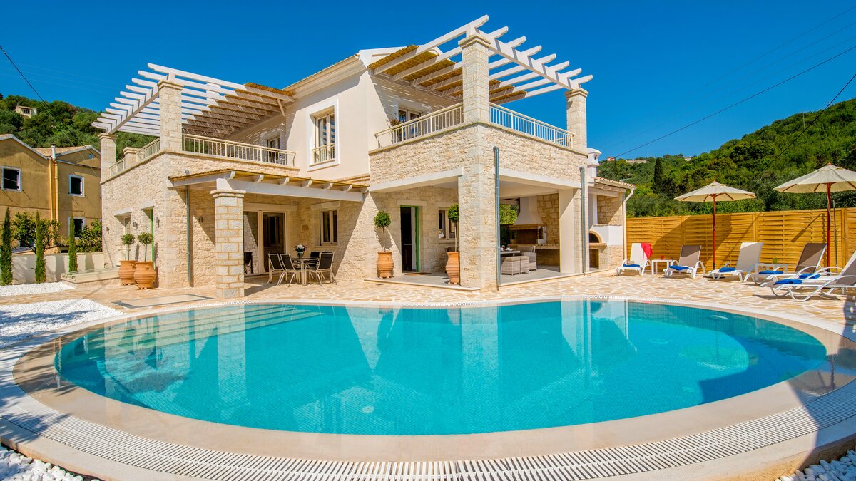 Villa Meraki är en fantastisk modern villa med ett fantastiskt läge mitt i hjärtat av St Stephano inom några minuters promenad från ett urval av restauranger, butiker och stranden. Denna perfekt storlek egendom i byns centrum har en härlig privat pool och en attraktiv täckt terrass med uteservering, grill och pizzaugn för måltider utomhus och solnedgångar. Denna villa kommer att vara vackert inredd till en hög standard med ett öppet vardagsrum och elegant kök med direkt tillgång till utomhus, ett sovrum med dubbelsäng och ett tvättstuga på bottenvåningen. Alla tre sovrummen har duschrum med eget badrum. Den första våningen är tillägnad ett vackert master bedroom som öppnar upp till en stor privat balkong, och ett sovrum med dubbelsäng med privat terrass. St Stephano stranden ligger fem minuters promenad från villan, stränderna i Kerasia och Avlaki ligger bara en kort bilresa bort och Kassiopi med alla dess bekvämligheter bara 5,8 km från fastigheten.