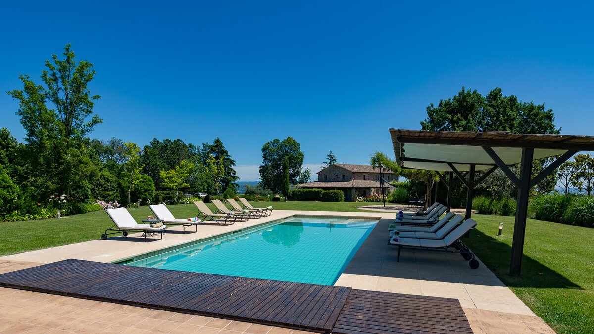Beläget i hjärtat av Umbriens landsbygd, har Villa Zafferano vackert omvandlats till en mycket rymlig lyxvilla för parter som söker en rymlig och mycket privat villa av mycket hög standard. Omgiven av vackra mogna trädgårdar med fantastisk utsikt, finns det mycket omfattande utomhusutrymmen vid villan, inklusive en stor gräsmatta med fotbollsmål bakom poolen; en grillplats, en utomhus matsal och gott om bord och mjuka sittplatser för att koppla av och uppskatta den vidsträckta utsikten som sträcker sig över kullarna mot staden Orvieto, tydligt synlig på avstånd. De rymliga interiörerna är omsorgsfullt möblerade i en modern stil med ljusa färger och vackert utrustade badrum. På bottenvåningen finns gott om kök, matsal och vardagsrum samt ett TV-rum och rum med biljardbord. Det finns direkt tillgång till terrassen, som leder till al fresco matbord och terrasser med mjuka sittplatser. Två sovrum med duschrum med eget badrum öppning till trädgårdarna kompletterar den lägre nivån av villan. Den första våningen består av fyra stora sovrum: ett rymligt sovrum med duschrum en suite, och ett rymligt tvåbäddsrum med eget badrum och separat dusch på ena sidan av villan och en annan rymlig dubbel med eget duschrum och tvåbäddsrum med eget badrum och dusch ligger på andra sidan av villan, vilket gör detta till ett idealiskt val för familjer som reser tillsammans. Matlagningsservice finns på begäran och Villa Zafferano ligger en kort bilresa från Fabro och Allerona och 25 minuter från den vackra staden Orvieto.