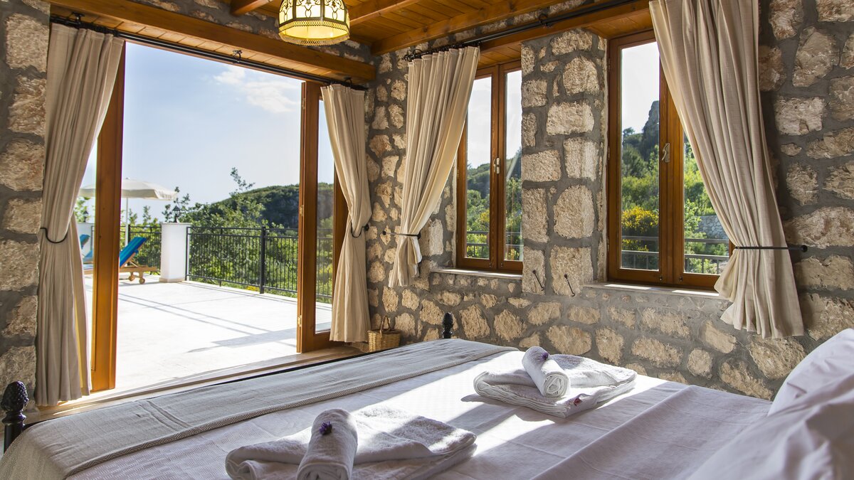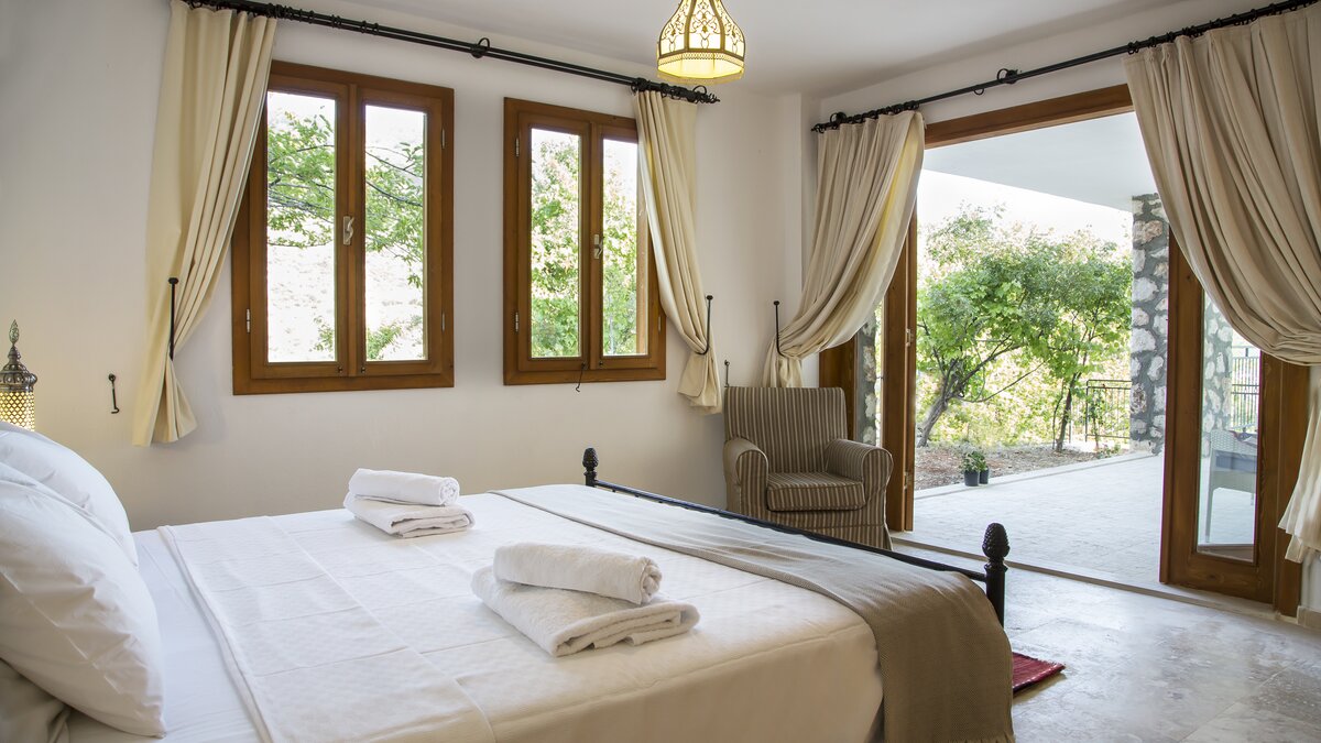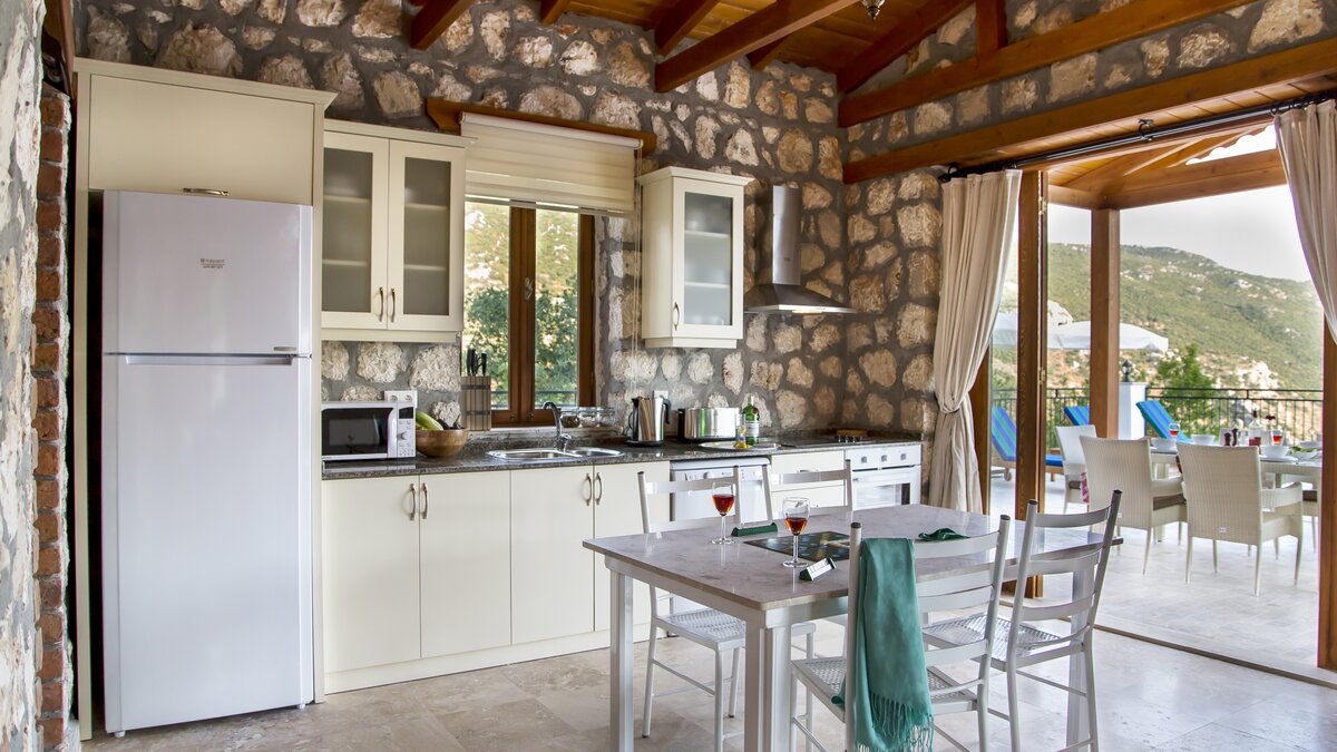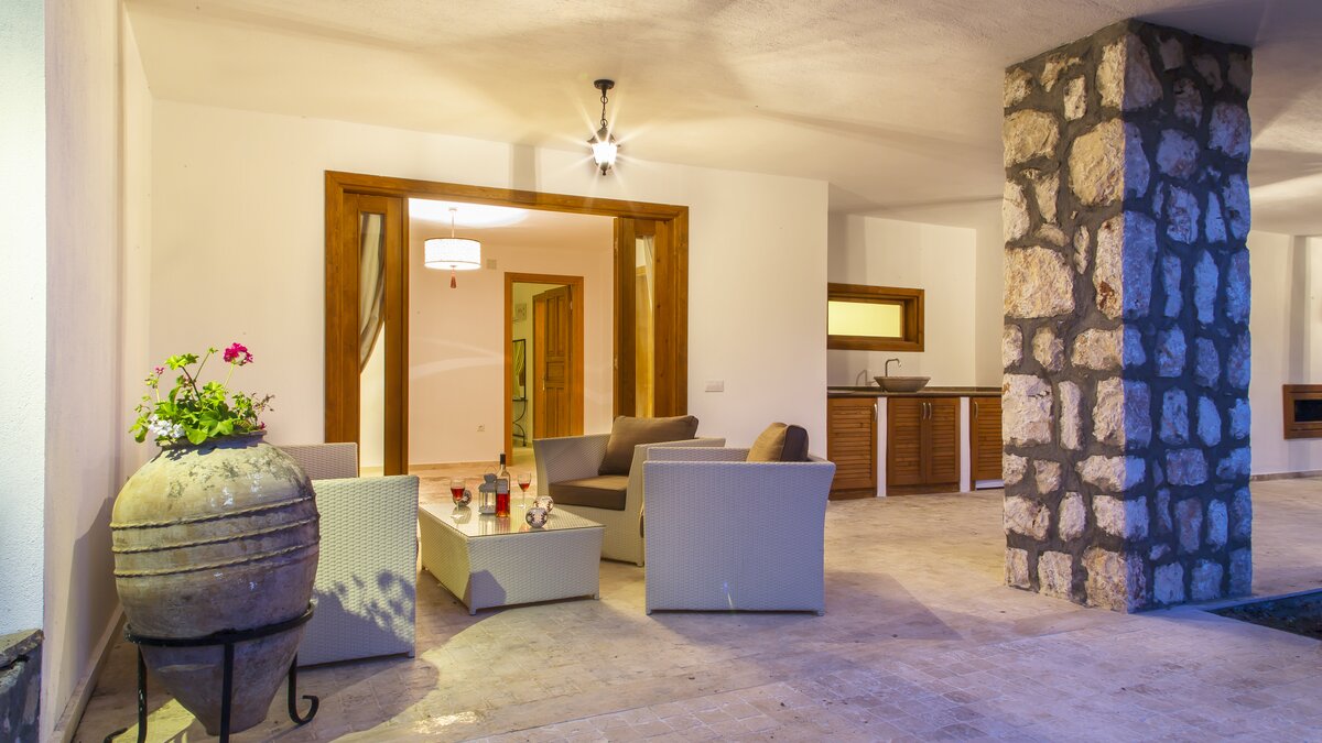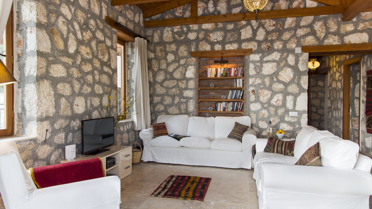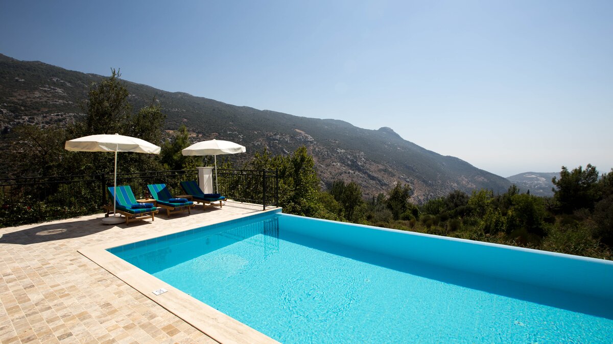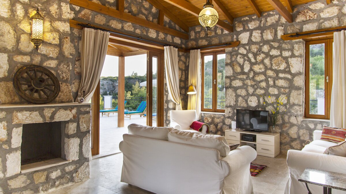 Shops and eateries in Islamlar centre are a walkable 1km from Yazarin Evi, with a local restaurant just a couple of minutes away, and yet this family villa is completely private, with only, a passing shepherd to punctuate its peaceful tempo. Thoughtful design and high standards are in evidence throughout the villa, not least in its positioning for panoramic views of the bay. Stepped into the hillside and entered on the upper level, high timber ceilings crown an open-plan living room, incorporating the kitchen and a cosy lounge area. An open fireplace here is flanked by French doors on to the spacious terrace, where the nine metre swimming pool is joined by a built-in barbecue and al fresco dining area. Two of the villa’s three bedrooms are also at this level, each with en suite shower room; and exterior stairs lead down to landscaped gardens and to the lower floor, home to a snug/TV room, the generous master suite and its large bathroom, and two small balconies with big sea views. Within 9km of pretty Kalkan’s harbour and beach clubs, the villa is 17km from horse riding on the long sands of Patara.